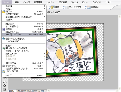 背景を透過にしたままメニューの【ファイル】から【web用に保存】を選択します^^