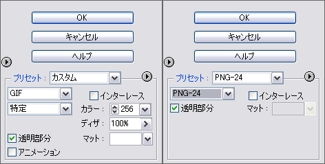 この画面でGIF、もしくはPNGの形式を選択すればいいと思います^-^