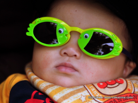 日差しも強く、何度も眠りを妨げられていたようなので、マリンピア日本海さんの売店に売られていたキッズ用サングラスをGET!