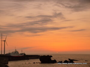 この日はとても夕日がきれいな日で、仕事終わりに海を見るともう夕日が地平線に消えてしまいそうではありませんか!!