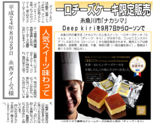 ついにお話しできる日がやってきました!!! 9月7日、あのコンビニスイーツの草分け的存在のローソンさんで、なんと!なんと!!なんと!!!ナカシマのディープ・キリが発売されます!!!!!^0^ 販売エリアは関東、新潟、長野 […]
